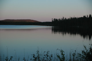 | Vårt tält och Swea vid Abborrtjärn i Vormsele. |